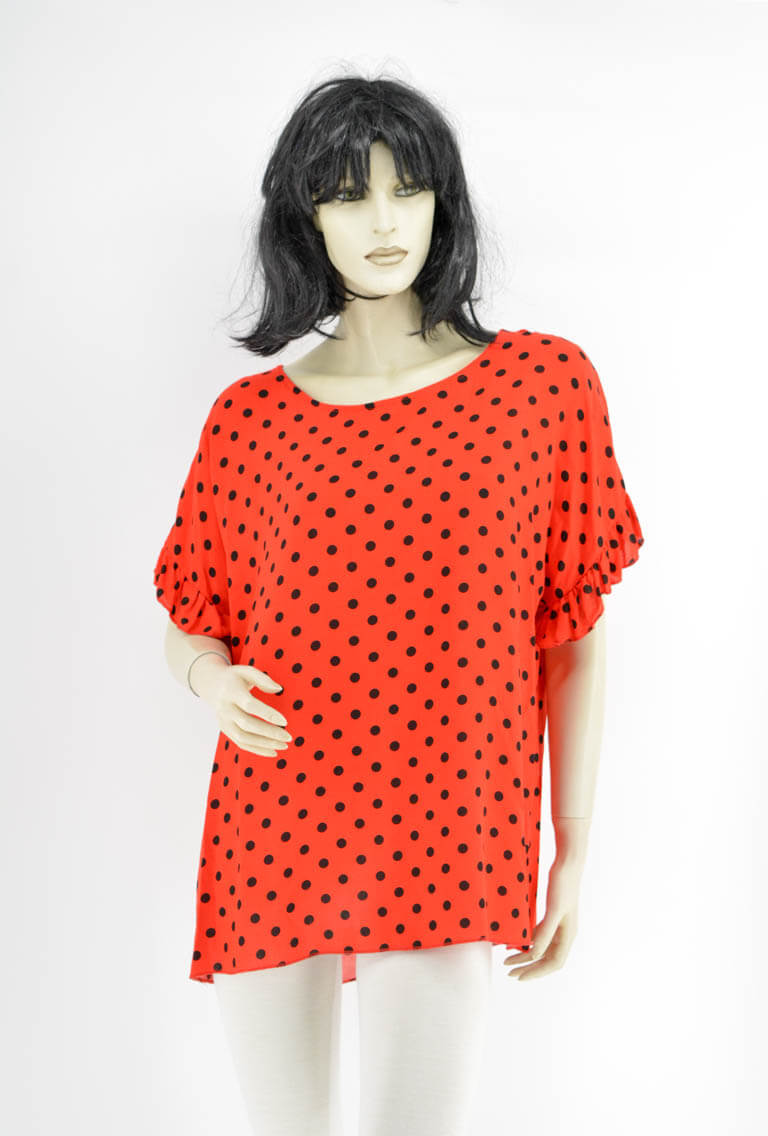 Polka dot blouse with bat sleeve